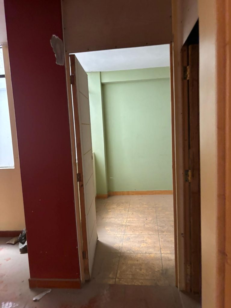 Distribución: Sala-Comedor, Balcón, Cocina, Pasadizo, 3 habitaciones, 2 Baños y Escalera de madera a Azotea abierta.