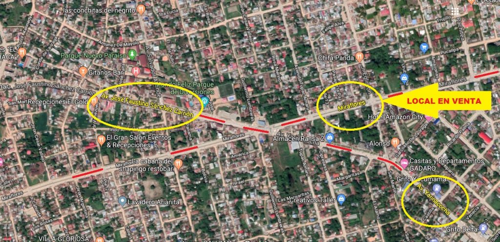 MantyObras Inmobiliaria tiene a la venta un TERRENO COMERCIAL en la Av. Miraflores del Distrito de Yarinacocha, Provincia Coronel Portillo y Departamento de Ucayali. Fundo Sagrario.