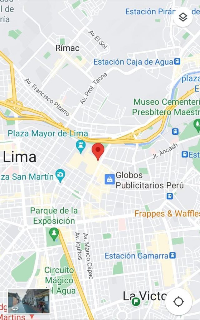 Los Depósitos/Stands/Locales Comerciales se encuentran en el segundo piso de un edificio de 4 pisos, a media cuadra de la Avenida Abancay. En la zona monumental del Damero de Pizarro, a pocos metros de la Av. Abancay y de la Plaza de Armas, frente al Congreso.