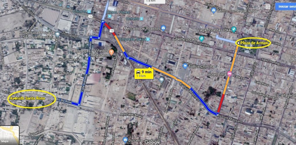 Principales vías de acceso: Carretera Panamericana Sur, Av. San Martín, Av. Santa Rosa, entre otros.